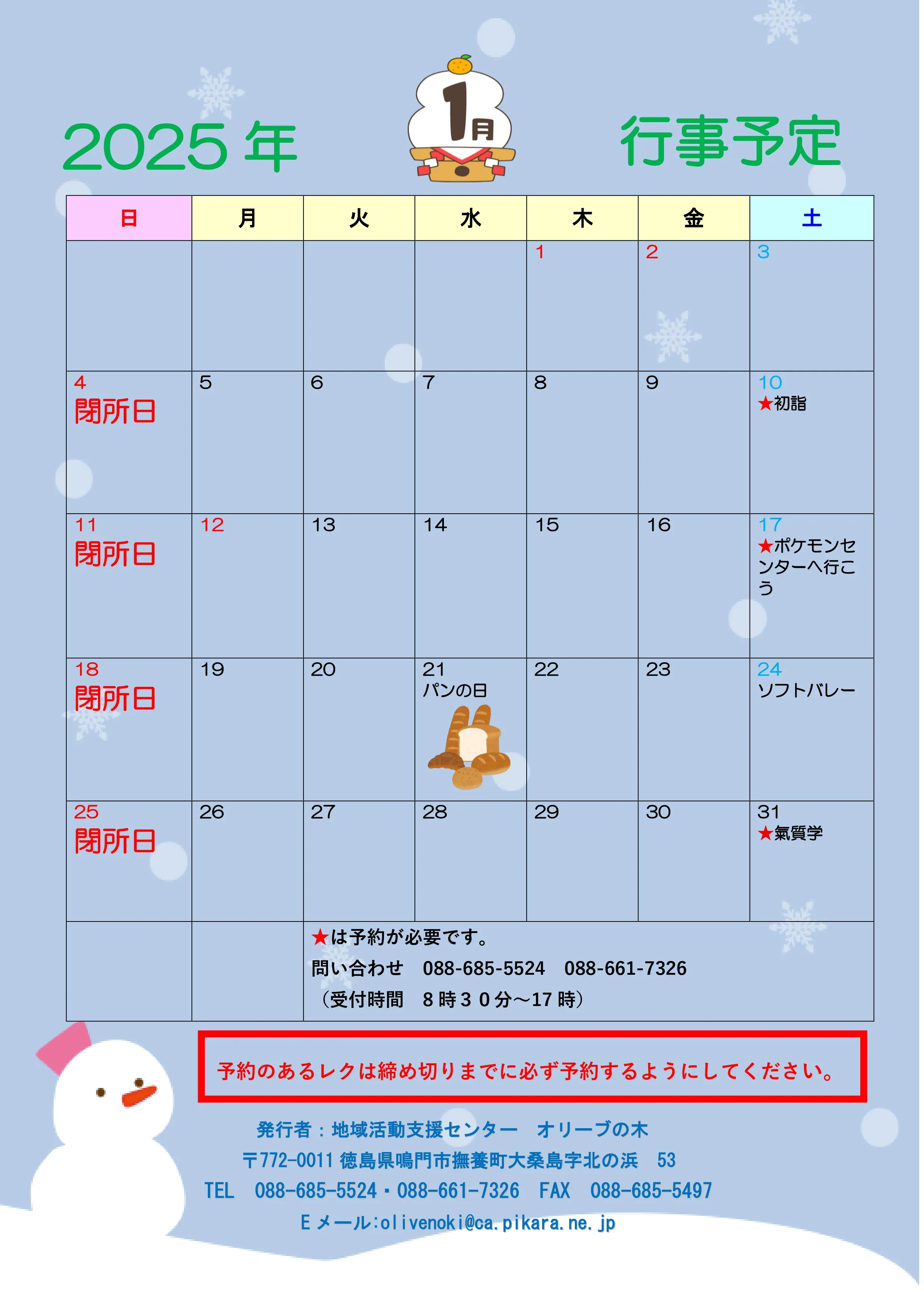 オリーブの木 1月行事予定