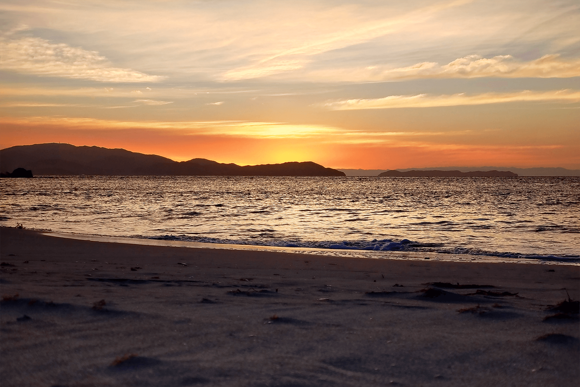 潮の満ち引きが奏でる海のささやき、海と山が織りなすやわらかな風景、静かに色を変える空のうつろい。